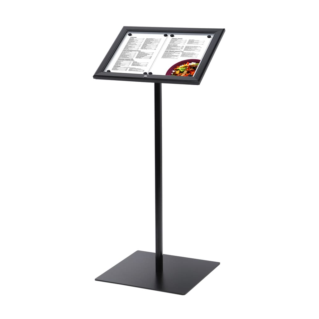 Menuboard s vitrínou je výborným řešením pro prezentaci informací či vystavení důležitých tiskovin na viditelném místě, a to nejen v oblasti restaurací. Menuboard je se svou pevnou hliníkovou konstrukcí a elegantním designem vhodný jak do interiérů, tak i do venkovních prostorů. Je velmi odolný, a to nejen proti nepříznivému počasí, ale také proti mechanickému poškození. Navíc je vybaven rozšířenou základnou, která zajišťuje výbornou stabilitu celé konstrukci.