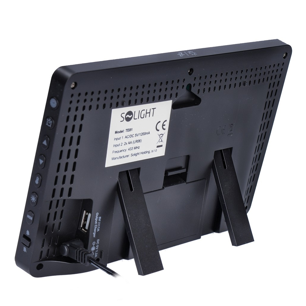 Meteostanice pomocí otvoru pro uchycení můžete zavěsit na zeď, popř. položit na stůl díky opěrnému stojánku.