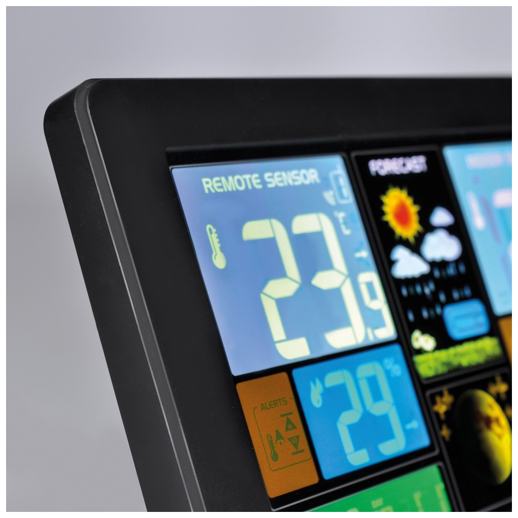 Měří teplotu v rozmezí od -25 °C až 60 °C. Disponuje funkcí předpovědi počasí v šesti grafických úrovních a pamatuje si veškerá teplotní maxima i minima ve vašem bezprostředním okolí.