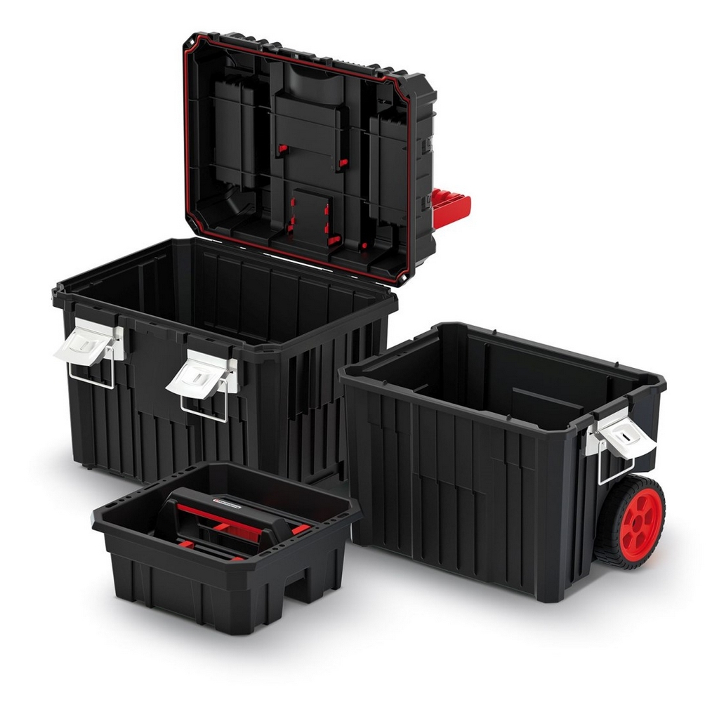 Tato pojízdná souprava kufrů pro vás bude skvělým řešením, pokud při práci používáte větší množství nářadí a součástek. Sadu tvoří kufr, box a hluboký vklad, horní kufr je navíc vybaven organizéry s přepážkami i krabičkami.