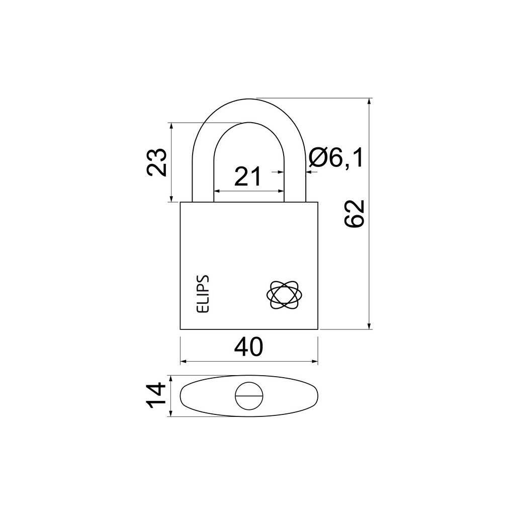 Mosazný visací zámek RV ELIPS 40, mosaz