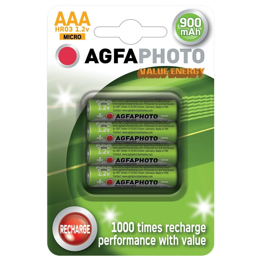 Nabíjecí NiMH baterie AgfaPhoto AAA, 900 mAh, 1,2 V, blistr 4 ks, nabíjecí