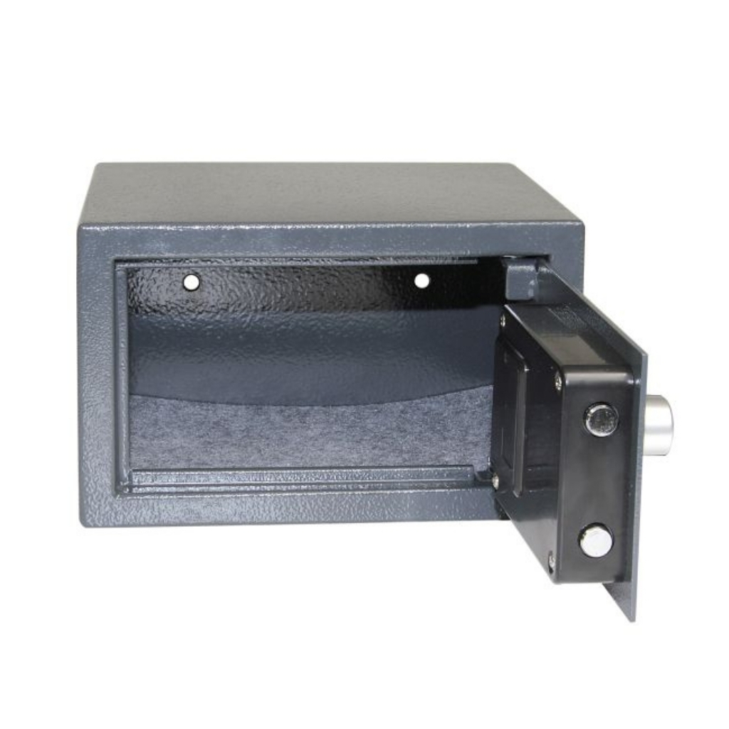 Síla dveří je 3 mm, plášť je silný 1 mm. Objem sejfu je 4 litry. Hmotnost je 2,74 kg.