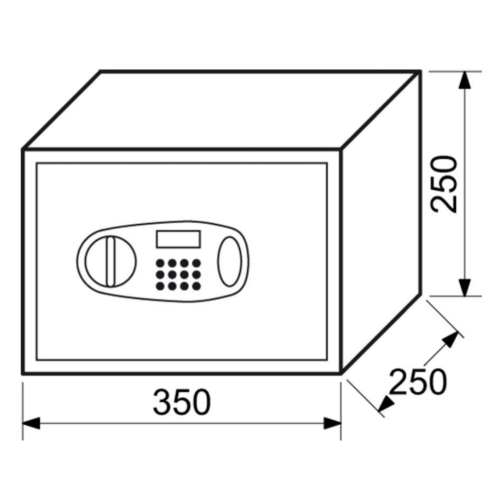 Síla dveří je 4 mm, plášť je silný 2 mm. Objem sejfu je 16 litrů. Hmotnost je 9,5 kg.
