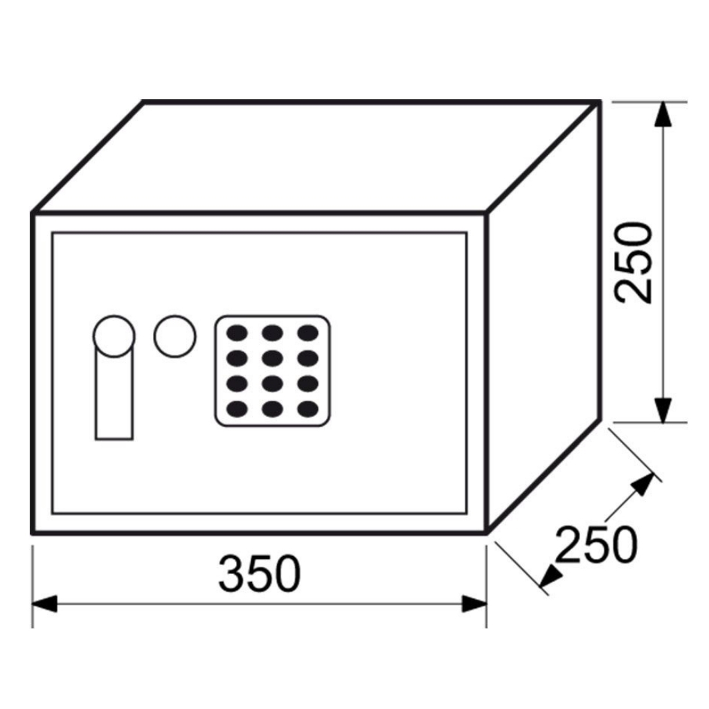Síla dveří je 4 mm, plášť je silný 2 mm. Objem sejfu je 16 litrů. Hmotnost je 8,8 kg.