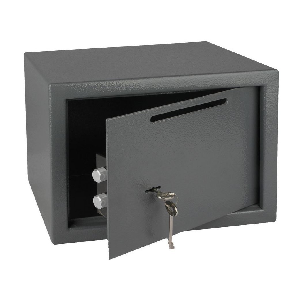 Nábytkový sejf s horním vhozem je vyrobený z oceli, která mu propůjčuje jen to nejlepší ze svých vlastností. Sejf je pevný a odolný, ochrání tak vaše peníze, šperky a jiné cennosti, které do něj vložíte.