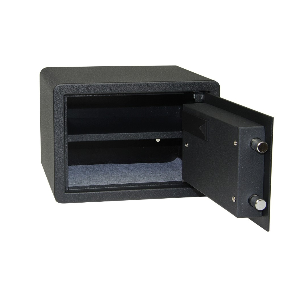 Síla dveří je 4 mm, plášť je silný 2 mm. Objem sejfu je 16 litrů. Hmotnost je 9,1 kg.