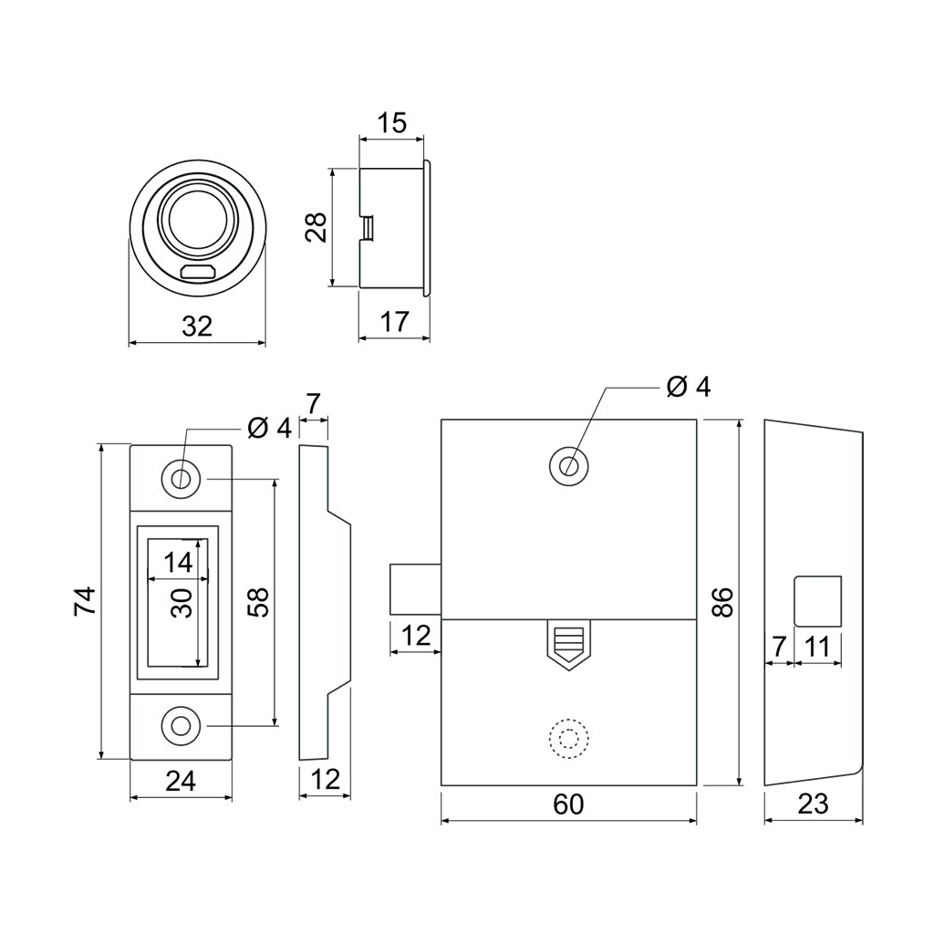 Nábytkový zámek s otiskem prstu CAB 30, černá