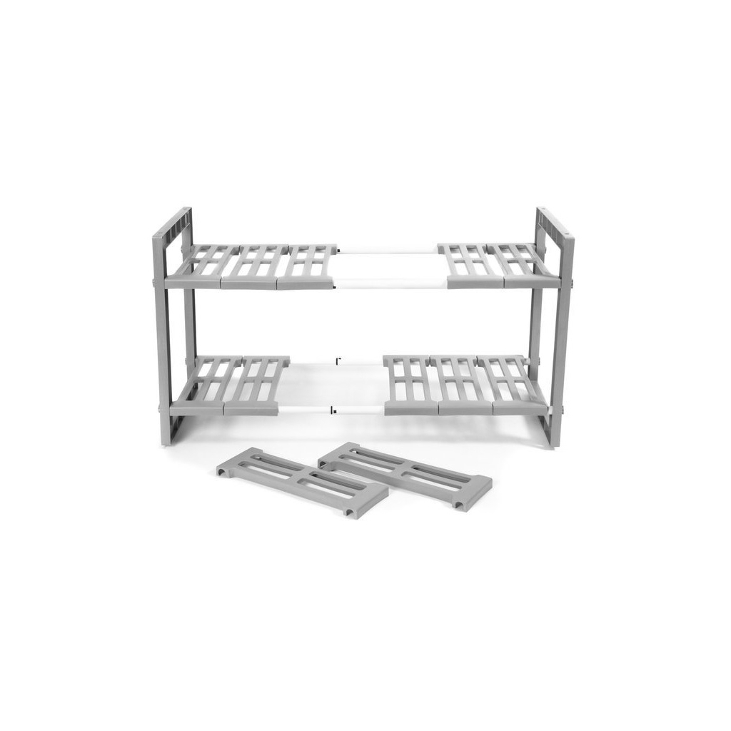 Nastavitelná polička Compactor je ideálním doplňkem do kuchyní, koupelen, ale i na toalety. Velkou výhodou poličky je především možnost nastavení její délky od 50 až po 76 cm. Konstrukce je vyrobena v kombinaci kovu a plastu.