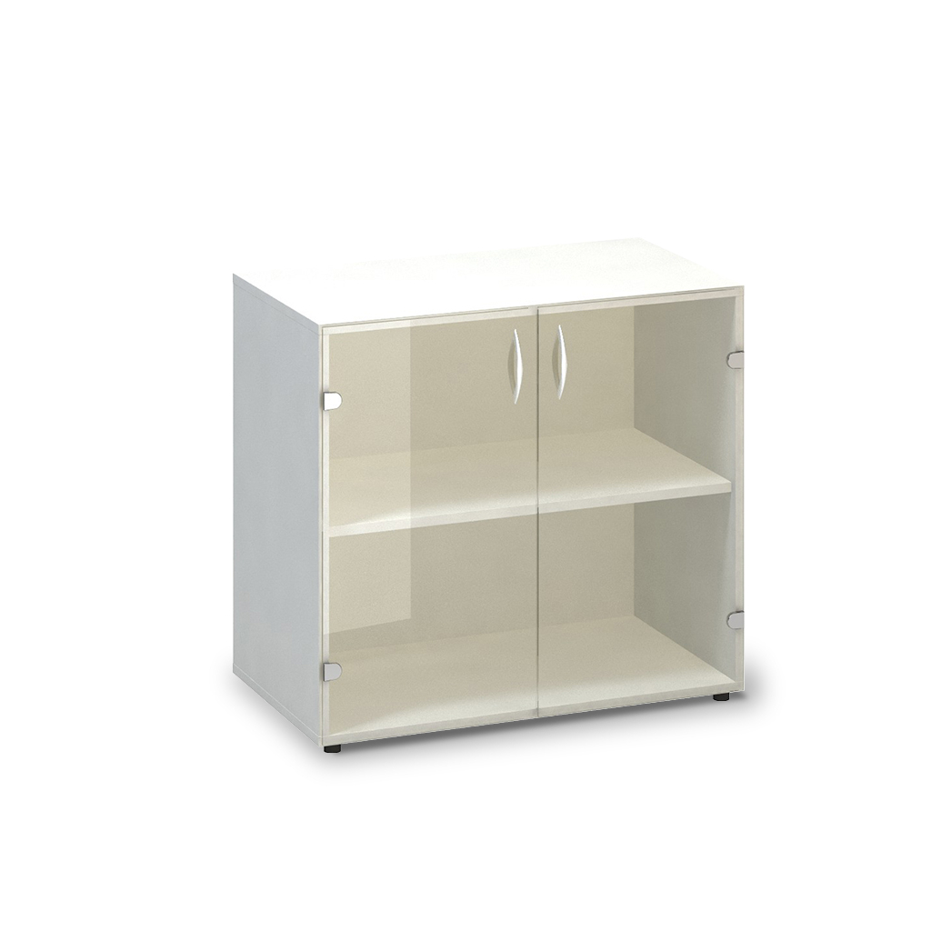 Nízká skleněná skříň ProOffice 80 x 45,8 x 73,5 cm, bílá