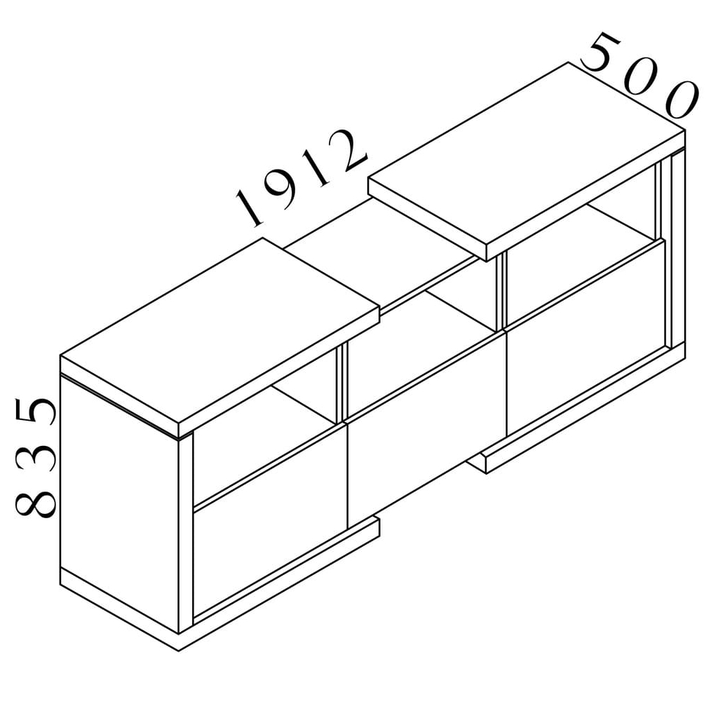 Nízká skříň Lineart disponuje jednou policí v každé ze tří částí skříně. Při rovnoměrném zatížení unese až 40 kg. Desky jsou vyrobeny z laminované dřevotřísky a mají sílu 54 mm.