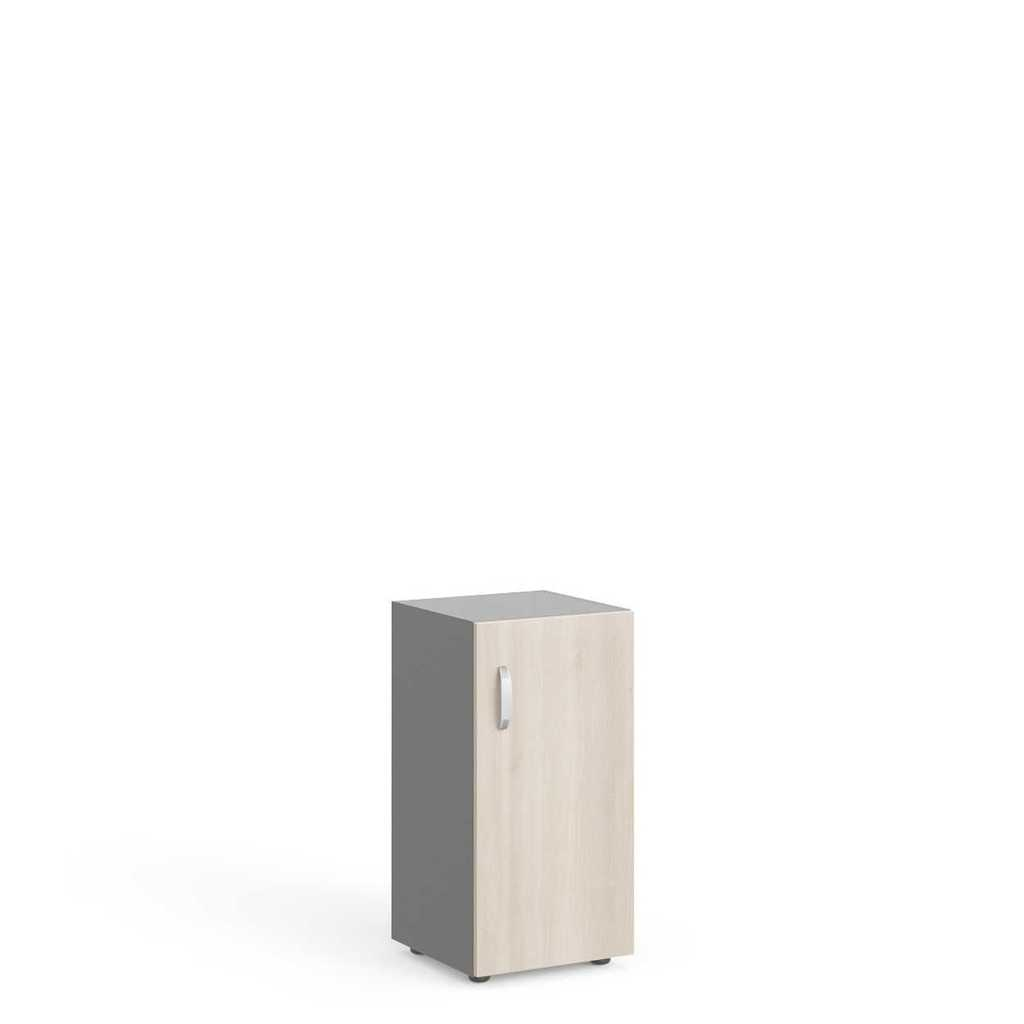 Skříň je dodávána společně s dřevěnými dveřmi, které jsou vybaveny plastovou úchytkou. Pro sjednocení elegantního vzhledu vaší kanceláře si můžete objednat obkladovou desku.
