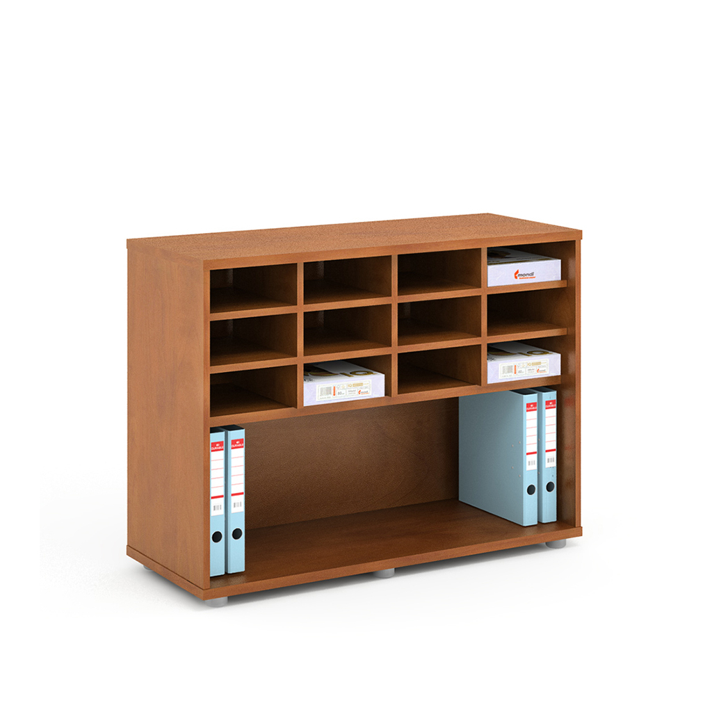 Jedná se o skříň, která jistě najde své využití například při archivaci, protože je v horní polici vybavena lístkovnicí. Ta obsahuje ve svém vnitřním prostoru celkem 12 poliček pro přehledné uložení a zařazení dokumentů.
