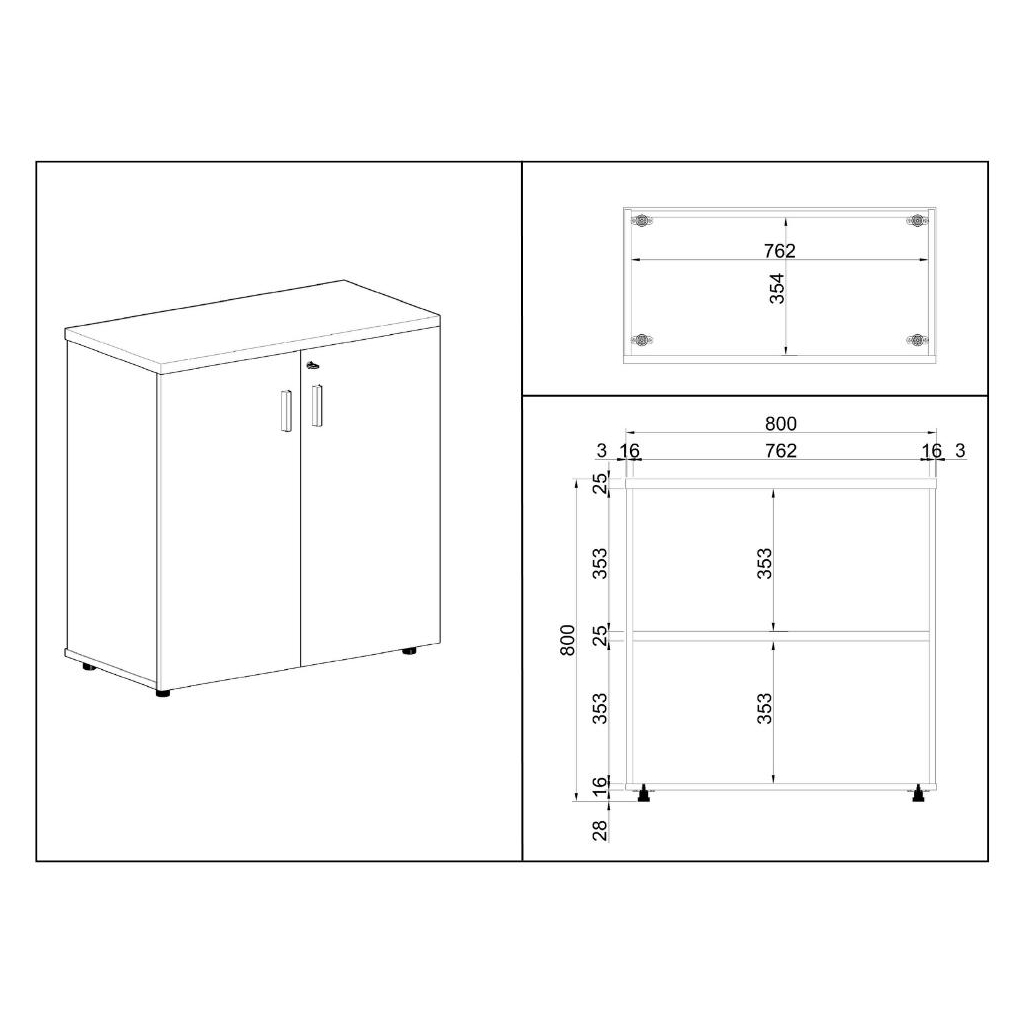 Celkové rozměry skříně jsou 80 × 40 × 80 cm (šířka × hloubka × výška). První dva z nich jsou jednotné pro všechny skříně SimpleOffice.