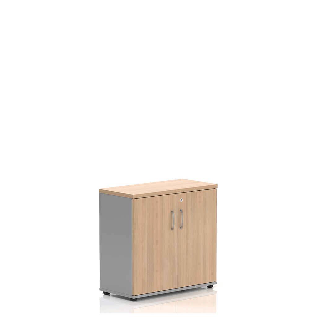Skříně Visio LUX nabízíme ve dvou dezénech, které vám zaručí jednotný vzhled vaší kanceláře. Boky a záda skříně jsou v elegantní šedé barvě.