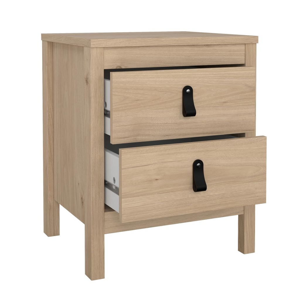 Noční stolek Real nabízí ideální kombinaci funkčnosti a jednoduchého moderního designu, který snadno doplní jakýkoliv interiér vašeho pokoje. Jeho kompaktní rozměry šetří místo, zatímco dvě prostorné zásuvky zajistí dostatek úložného prostoru pro drobné předměty, které chcete mít vždy po ruce.