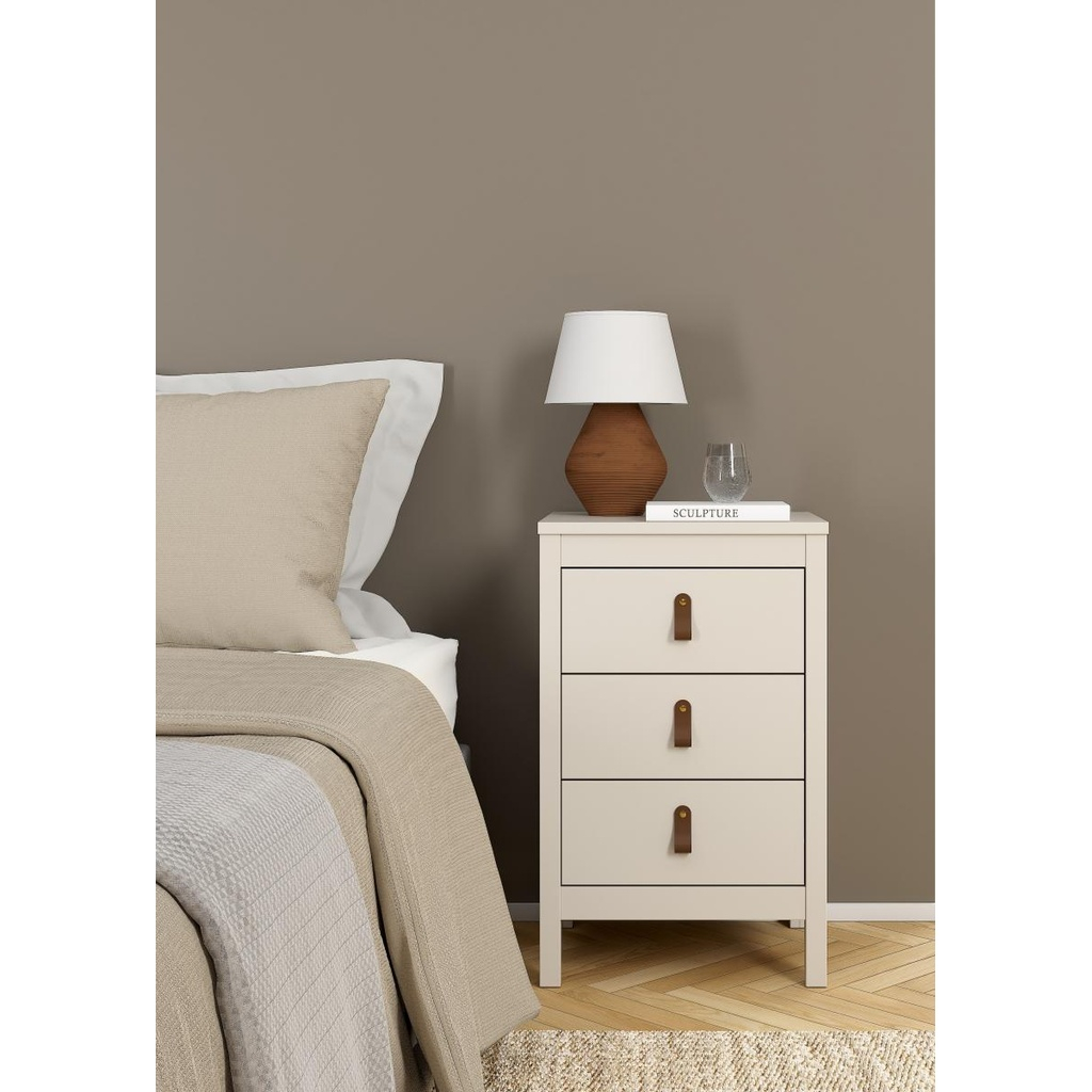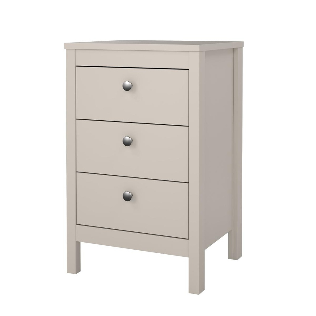 Noční stolek Real II s koženými úchyty představuje ideální volbu pro ty, kteří hledají kombinaci funkčnosti a moderního designu. Díky třem prostorným zásuvkám poskytuje dostatek místa pro uložení nezbytností, které chcete mít vždy po ruce v ložnici. Jeho čisté linie a jednoduchý tvar se snadno sladí s různými styly interiérů.