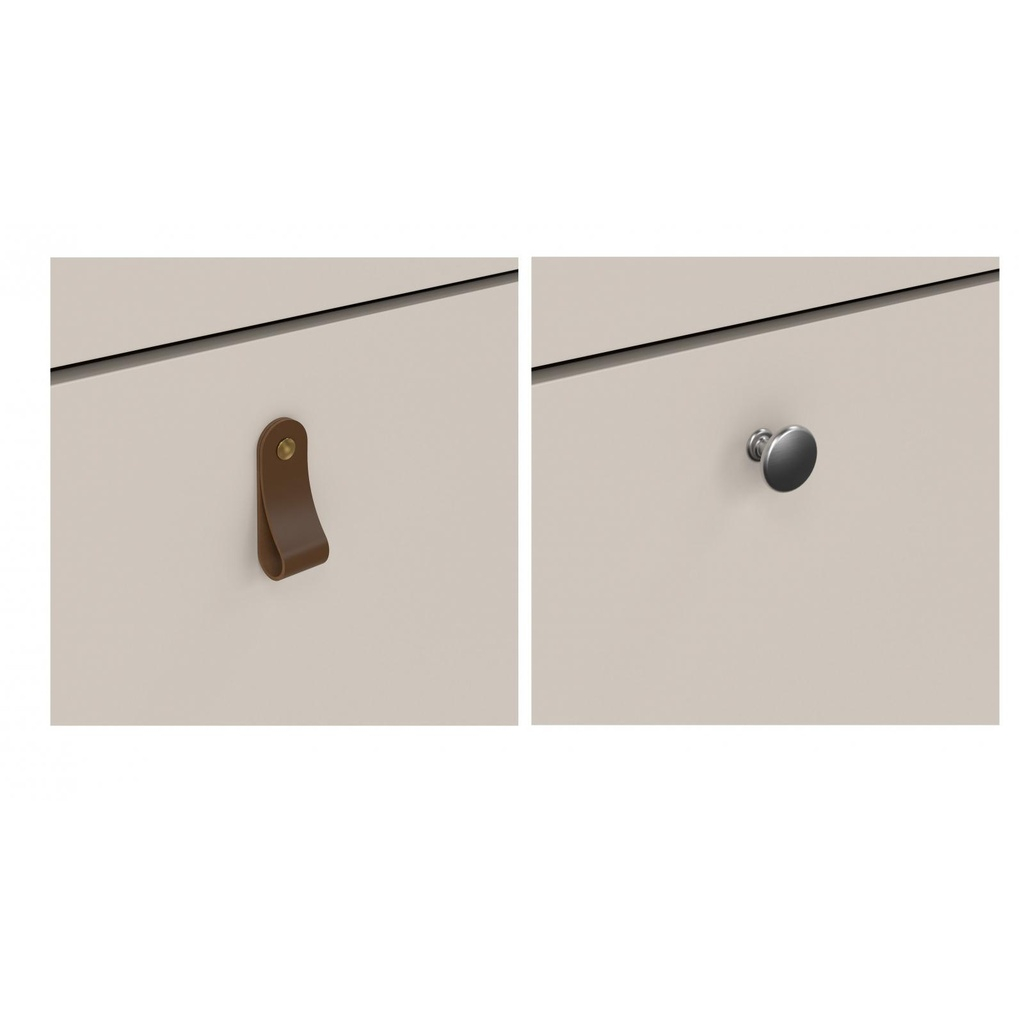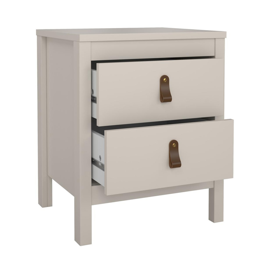 Design stolku je podpořen praktičností a jednoduchou údržbou, což z něj činí praktickou volbu pro každou ložnici. Kožené úchyty přidávají nábytku na stylovosti a zároveň usnadňují manipulaci se zásuvkami.