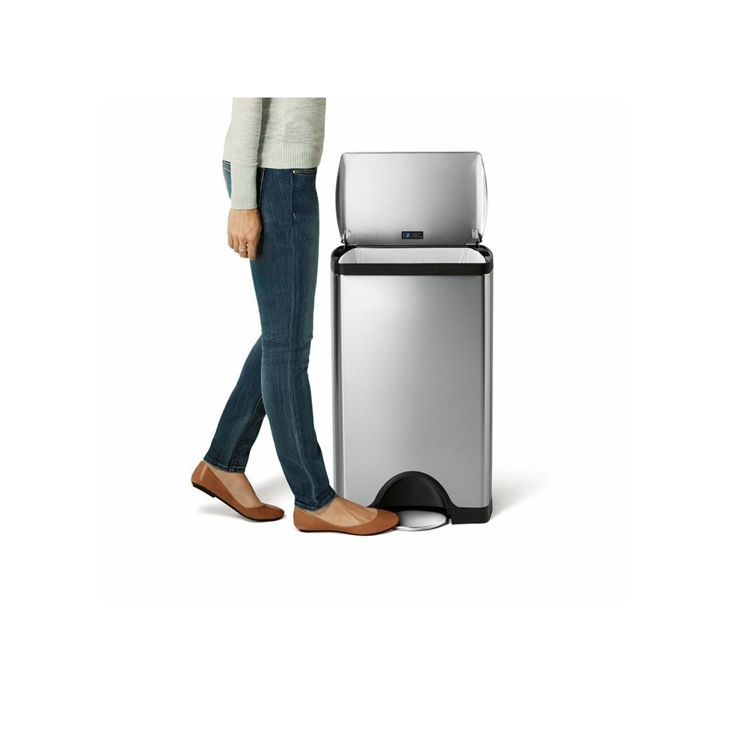Víko koše se otevírá sešlápnutím pedálu. Nemusíte se tak bát šíření bakterií, protože se jeho povrchu nemusíte dlaní ani dotknout. Ocelový pedál vydrží až 150 000 sešlápnutí, což je více než 20 sešlápnutí denně po dobu 20 let. Zavírání víka je pomalé a tiché. Gumové nožičky jsou šetrné k podlaze a zajišťují dokonalou stabilitu koše.