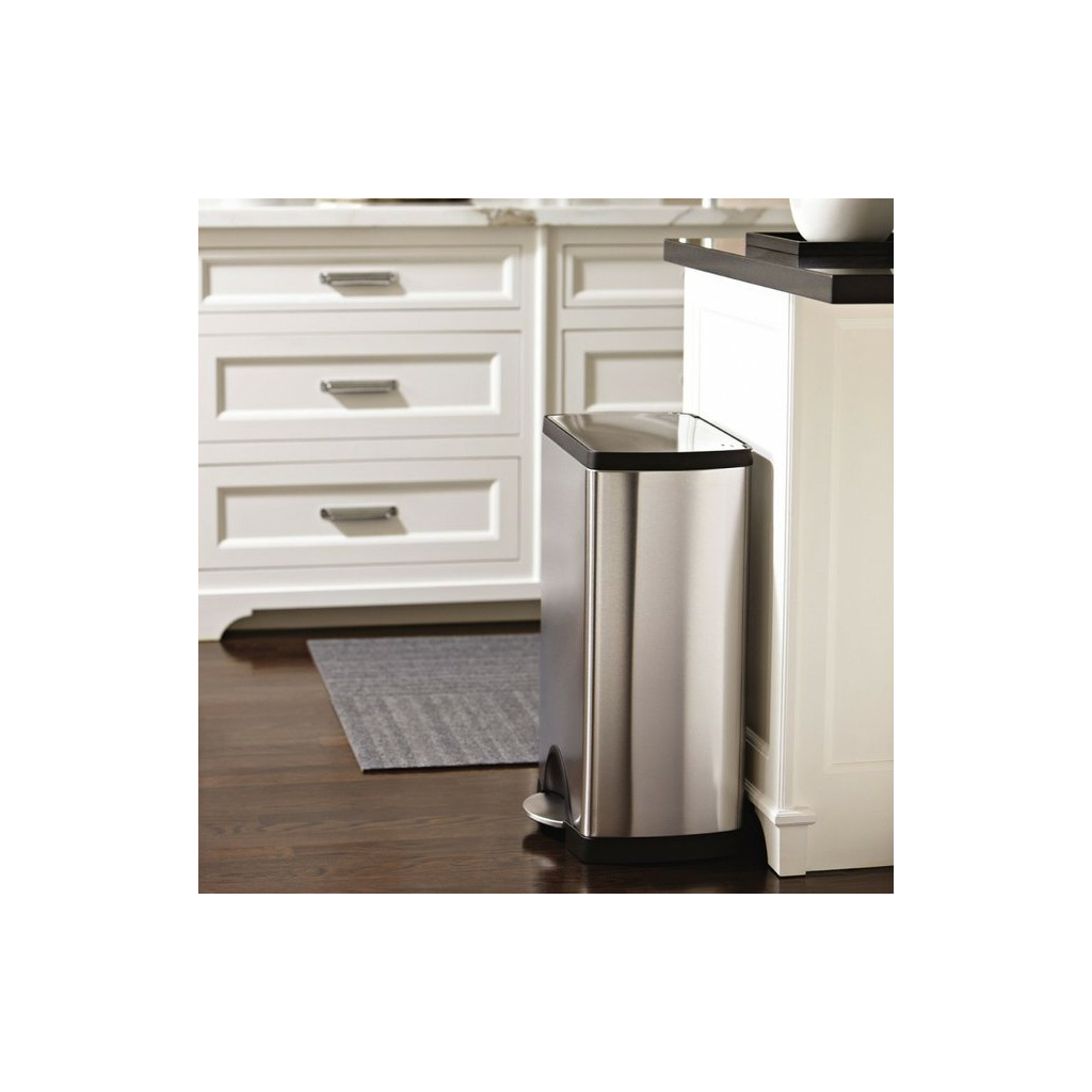 Velký obdélníkový odpadkový koš s objemem 38 l využijete díky jeho preciznímu designu v domácnosti i firemních prostorech. Své uplatnění nalezne zejména v kuchyních či umývárnách. Jeho konstrukce je vyrobená z odolné matné nerezové oceli.