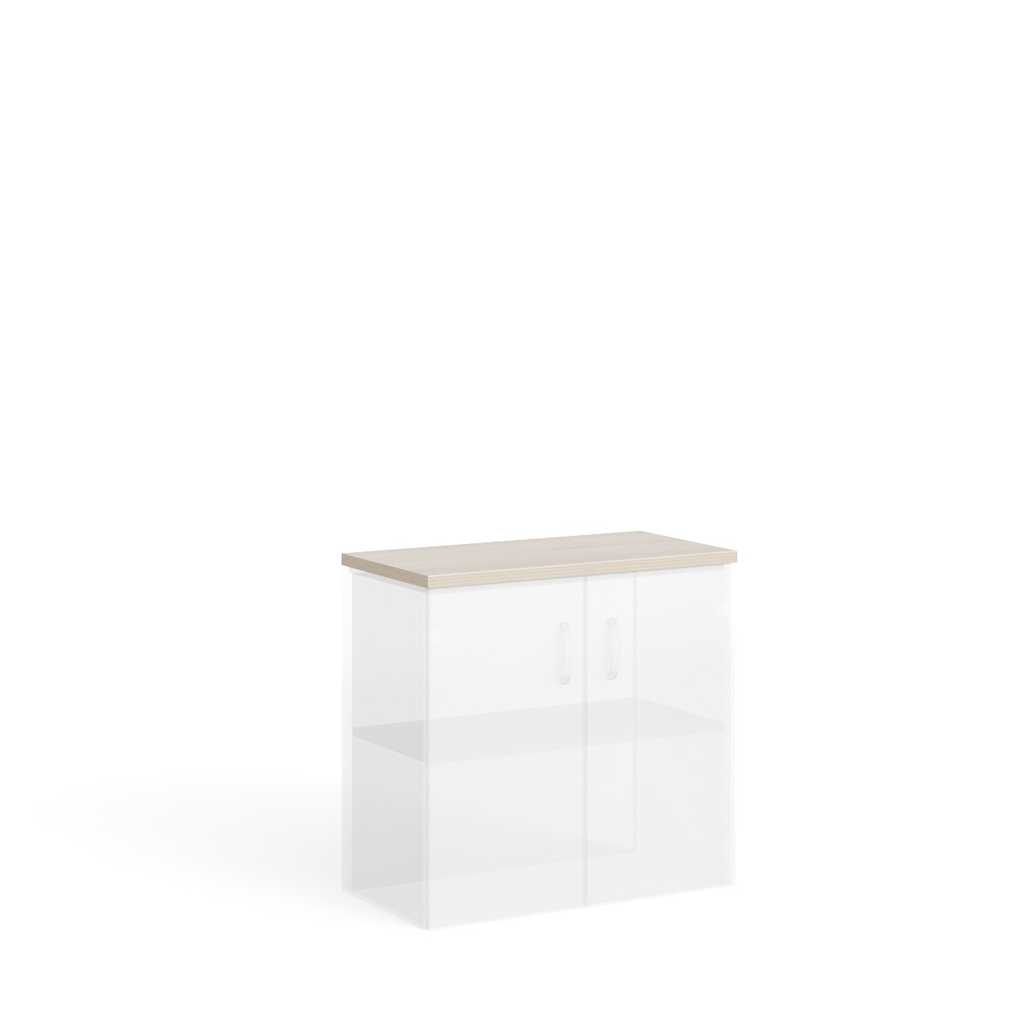 Deska v této velikosti je určena pro široké skříně Manager. Zakryje jejich šedý korpus a dodá tak kanceláři jednotný design.