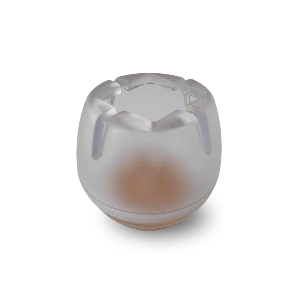 Balení obsahuje 4 gumové návleky s otvorem o rozměrech 15 × 15 mm. Doporučujeme je pro nohy s o chlup silnějším profilem – otvor se díky nastřižení trochu přizpůsobí a zajistí, že krytka nebude sklouzávat. Základna je potažená filcem, tedy odolnou netkanou textilií.