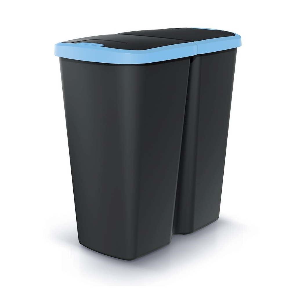 Odpadkový koš DUO černý, 45 l, modrá / černá