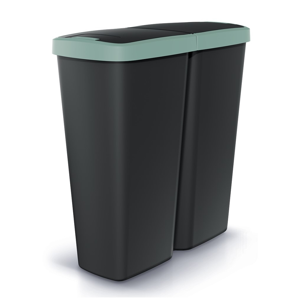 Odpadkový koš DUO černý, 50 l, zelená / černá