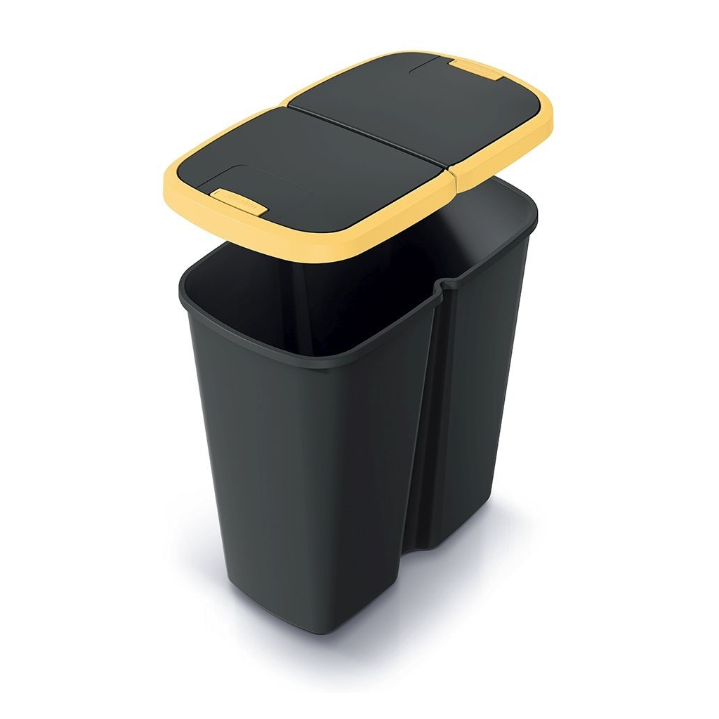 Odpadkový koš DUO černý, 50 l, žlutá / černá