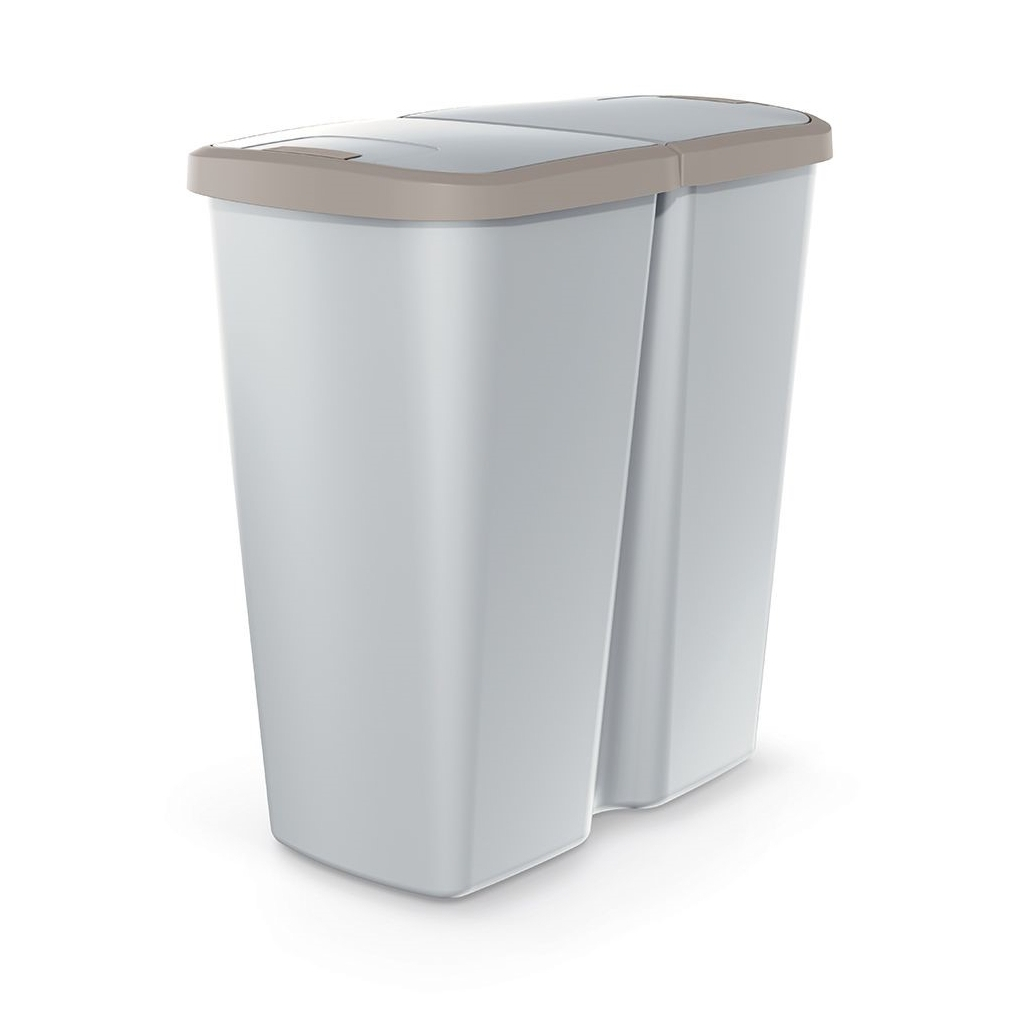 Odpadkový koš DUO šedý, 45 l, hnědá / šedá