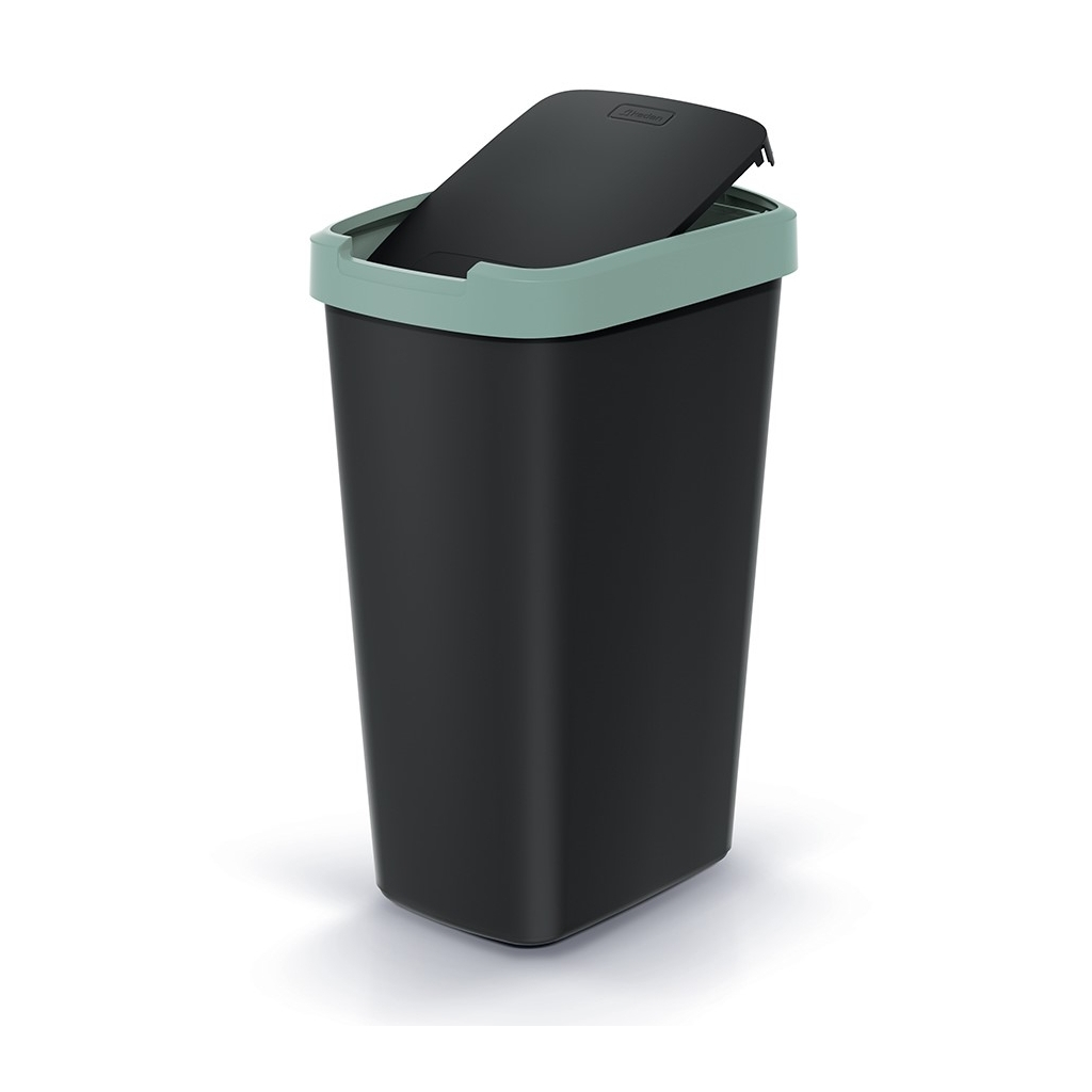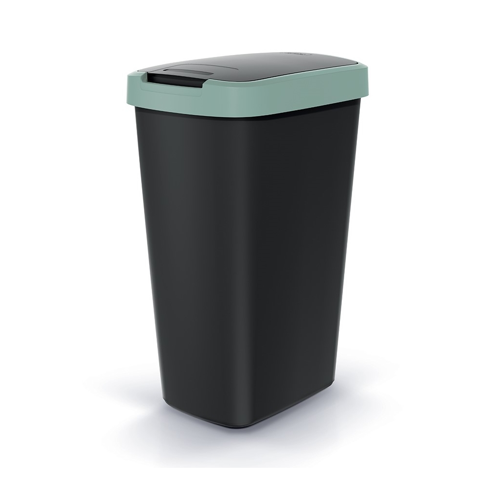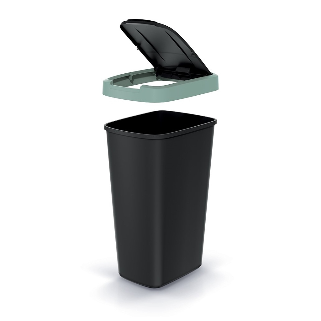 Odpadkový koš s barevným víkem, 45 l, zelená / černá