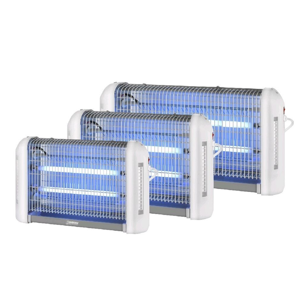 Komáři ani jiný drobný hmyz už nemají šanci. S odpuzovačem EUROM Fly Away 16 Allround odeženete všechny škůdce do věčných lovišť. Lampa s ultrafialovým zářením hmyz naláká dovnitř a vysoké napětí v kleci o výši 2400 V se postará o jejich zneškodnění.
