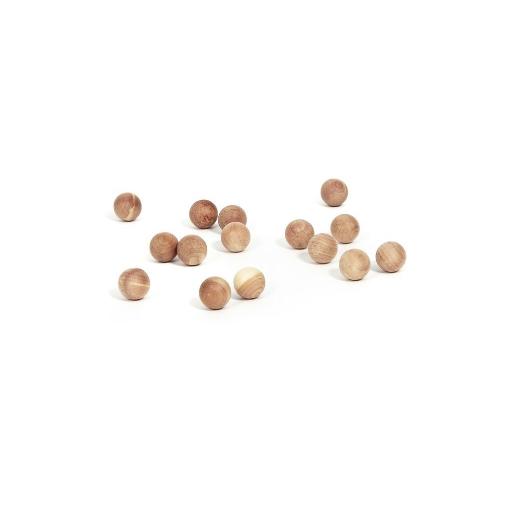 Ochraňte své oblečení v šatní skříni či zásuvce efektivně. Bojovat proti molům můžete i přírodní cestou bez chemických přípravků. Odpuzovací kuličky jsou vyrobeny z cedrového dřeva a pro tyto situace jsou ideálním řešením. Sada obsahuje celkem 15 kuliček o průměru 2 cm.