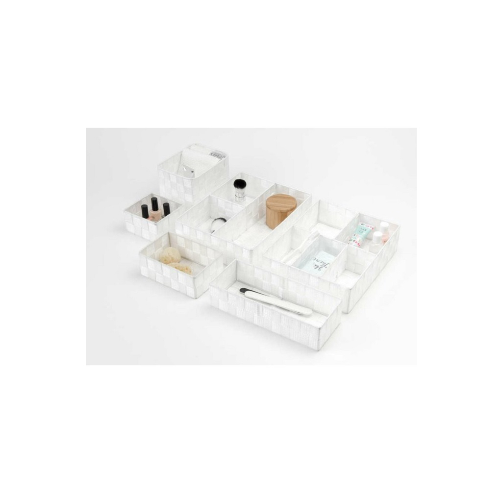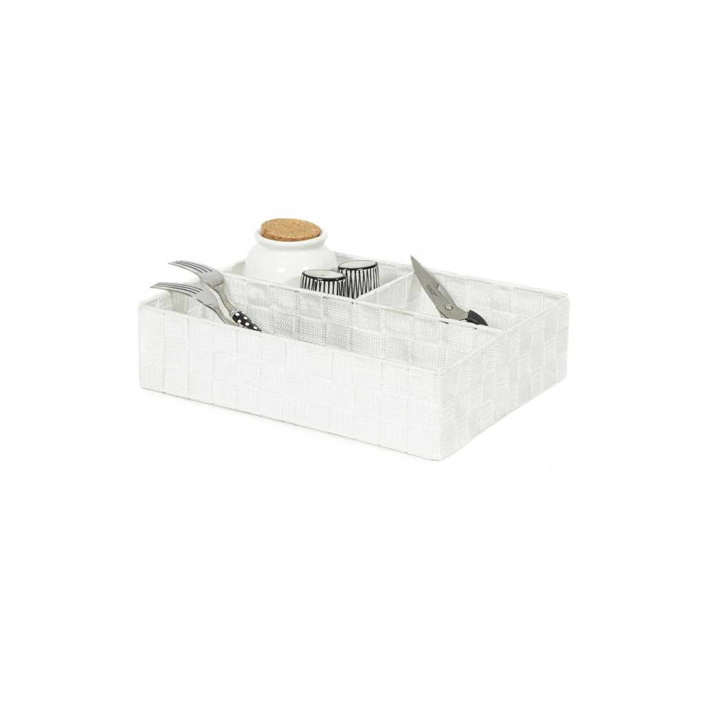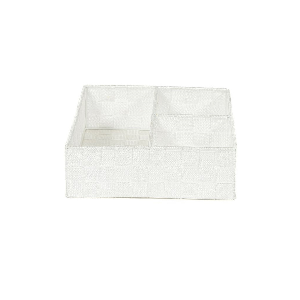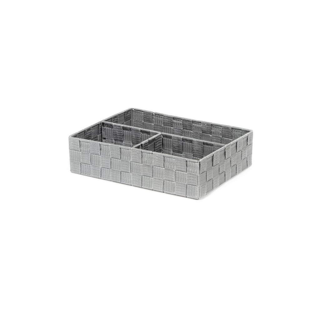 Úložný organizér se 3 přihrádkami je praktickým doplňkem do kanceláří i do domácností. Disponuje rozměry 32 × 25 × 8 cm a je vyroben ze tkané textilie s kovovým rámem. Do organizéru tak můžete uložit téměř cokoliv. Svou velikostí jsou tyto organizéry vhodné zejména na poličky nebo do zásuvek.