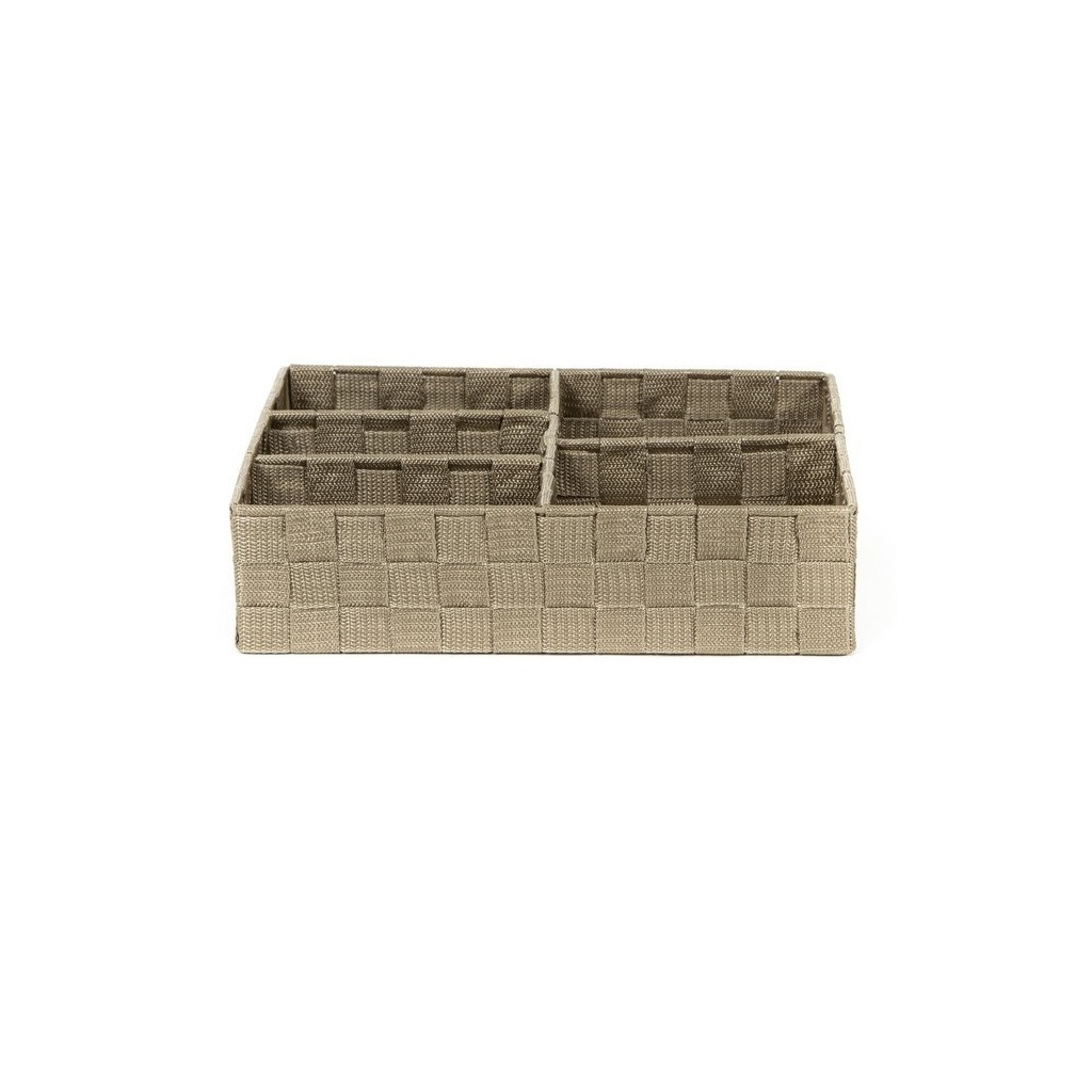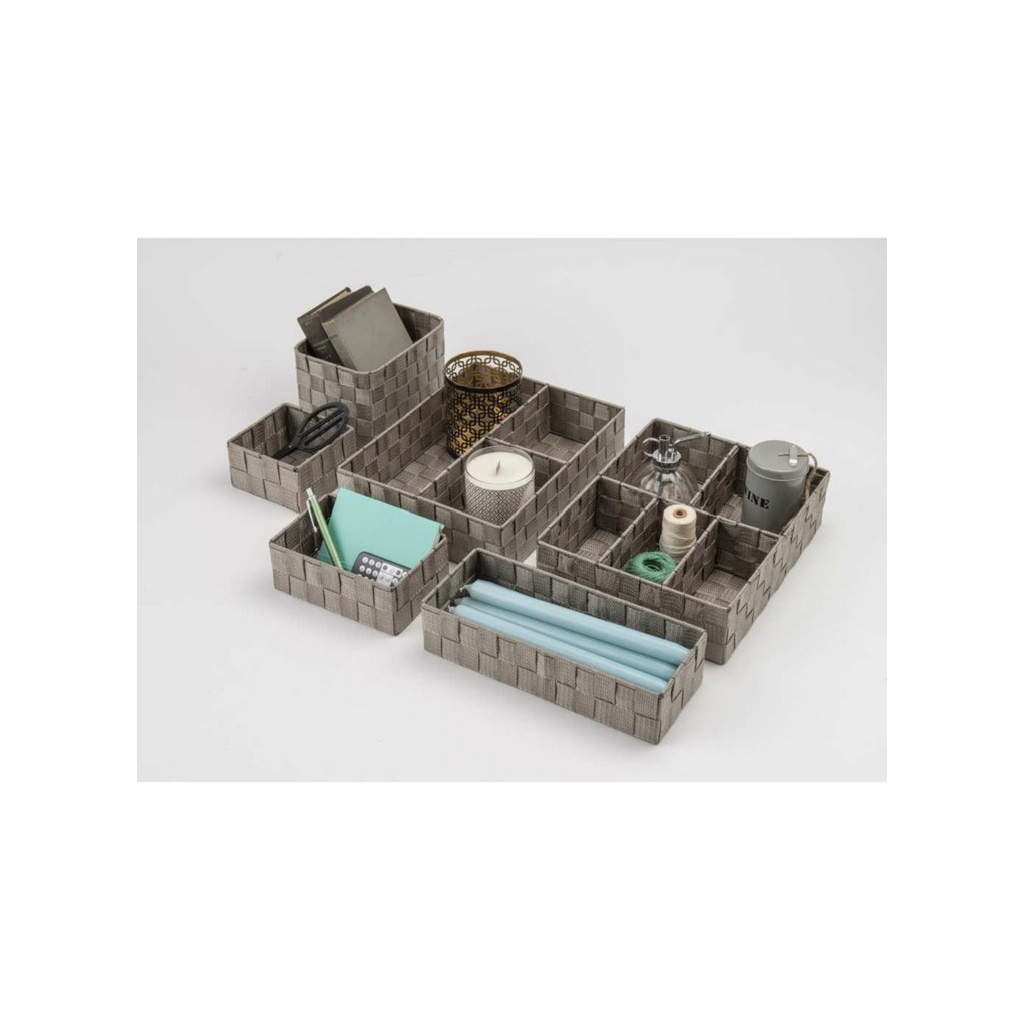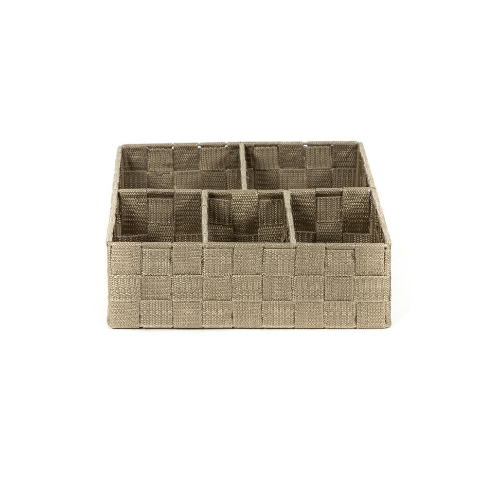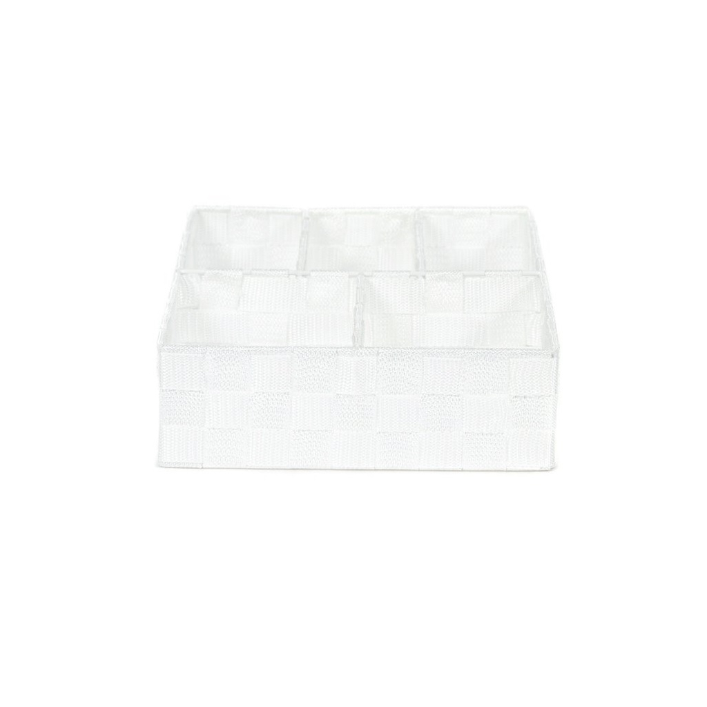 Úložný organizér s 5 přihrádkami je praktickým doplňkem do kanceláří i do domácností. Disponuje rozměry 32 × 25 × 8 cm a je vyroben ze tkané textilie s kovovým rámem. Do organizéru tak můžete uložit téměř cokoliv. Svou velikostí jsou tyto organizéry vhodné zejména na poličky nebo do zásuvek.