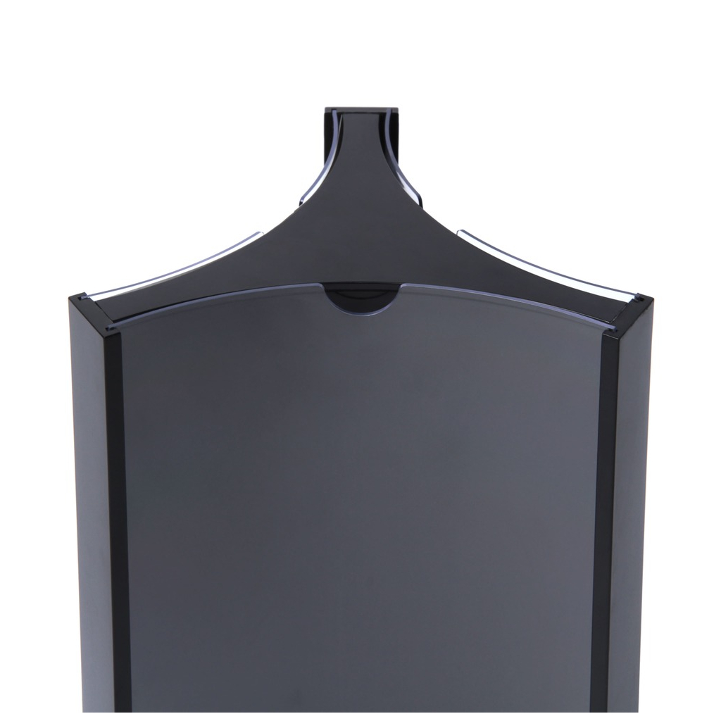 Otočný menu stojánek ve formátu DL, tedy 1/3 A4, odpovídá formátu papíru s rozměry 22 × 9,9 cm. Je skvělým řešením pro prezentaci reklamních letáků či jiných tiskovin, a to nejen v gastronomickém či kancelářském prostředí. Tento moderní třístranný nástroj je vyroben z kvalitního černého plastu, který zabraňuje poškození obsahu. Velkou výhodou jsou zde hned 3 využitelné kapsy, pomocí kterých je možno sdělit mnohem více informací najednou. Stojánek je určen k vystavení na viditelné místo, kde se díky svému zpracování stane snadno středem pozornosti.