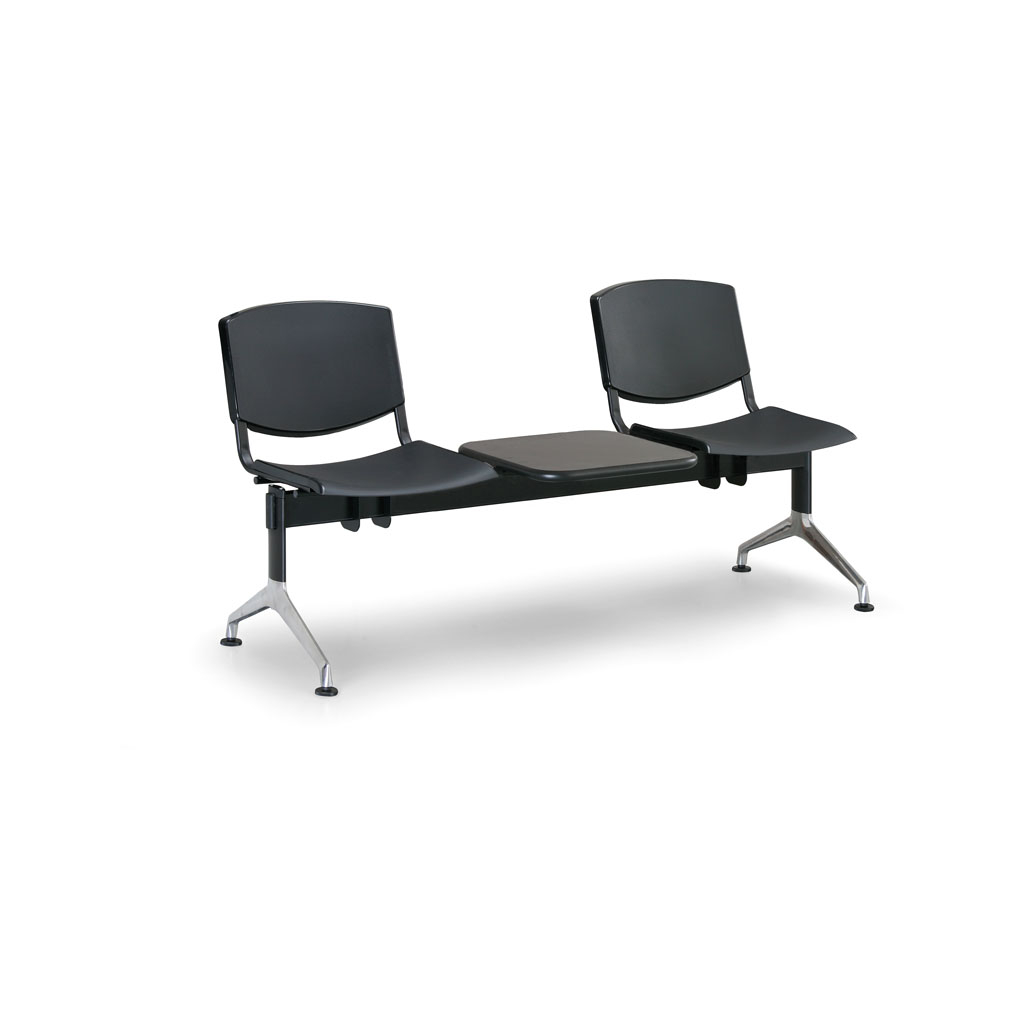 Plastová lavice Design v provedení s hliníkovými nohami a odkládacím stolkem je skvělým vybavením do veřejných prostorů, hal či nejrůznějších typů čekáren. Jednotlivá místa k sezení jsou umístěna na ocelové konstrukci lavice a skládají se z tvrzených plastových desek pro sedák i opěrák. Velkou výhodou plastové lavice je odolnost proti poškození a velmi snadná údržba včetně čištění.
