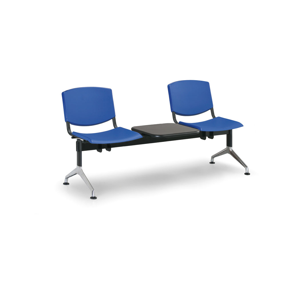 Plastová lavice Design v provedení s hliníkovými nohami a odkládacím stolkem je skvělým vybavením do veřejných prostorů, hal či nejrůznějších typů čekáren. Jednotlivá místa k sezení jsou umístěna na ocelové konstrukci lavice a skládají se z tvrzených plastových desek pro sedák i opěrák. Velkou výhodou plastové lavice je odolnost proti poškození a velmi snadná údržba včetně čištění.