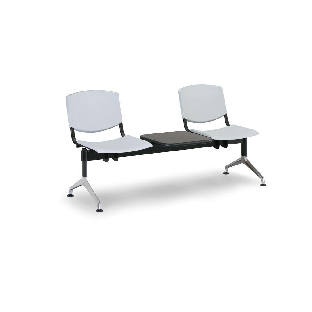 Plastová lavice Design v provedení s hliníkovými nohami a odkládacím stolkem je skvělým vybavením do veřejných prostorů, hal či nejrůznějších typů čekáren. Jednotlivá místa k sezení jsou umístěna na ocelové konstrukci lavice a skládají se z tvrzených plastových desek pro sedák i opěrák. Velkou výhodou plastové lavice je odolnost proti poškození a velmi snadná údržba včetně čištění.