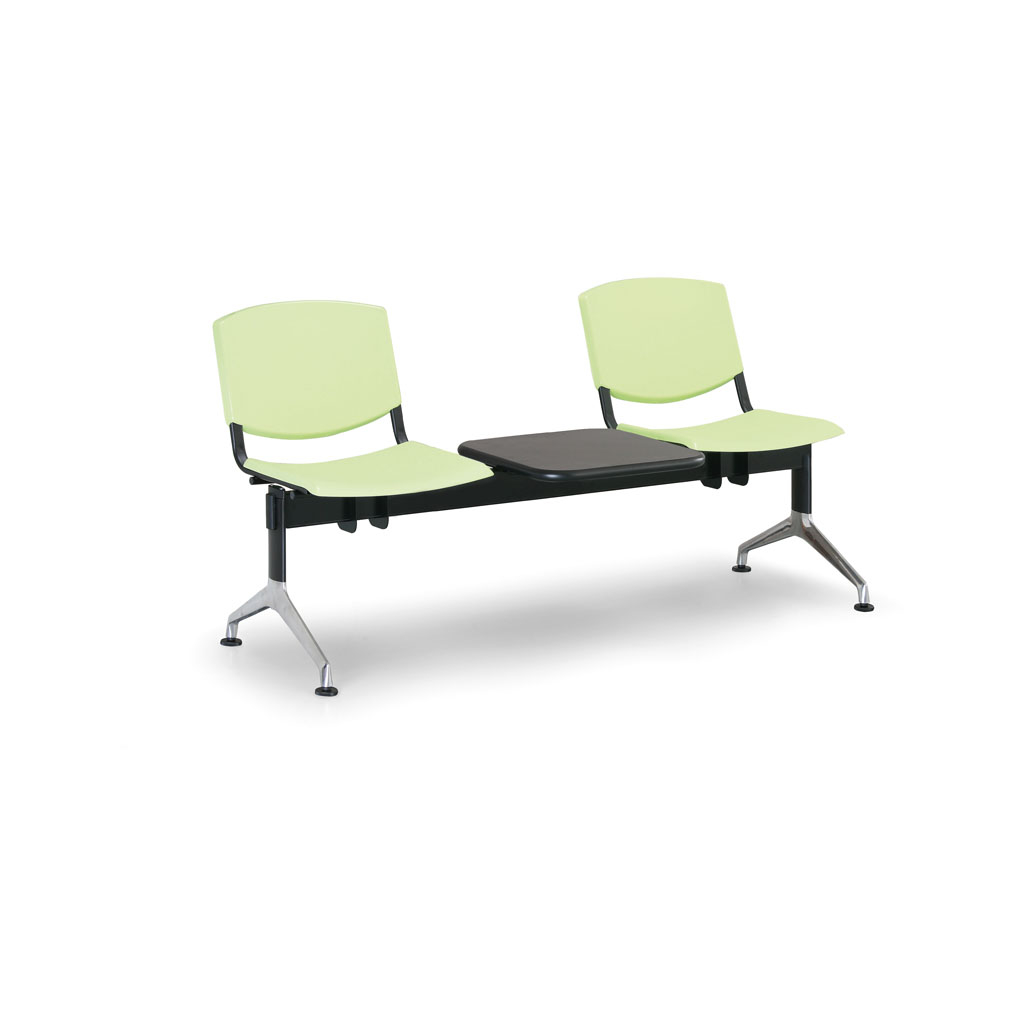 Plastová lavice Design v provedení s hliníkovými nohami a odkládacím stolkem je skvělým vybavením do veřejných prostorů, hal či nejrůznějších typů čekáren. Jednotlivá místa k sezení jsou umístěna na ocelové konstrukci lavice a skládají se z tvrzených plastových desek pro sedák i opěrák. Velkou výhodou plastové lavice je odolnost proti poškození a velmi snadná údržba včetně čištění.
