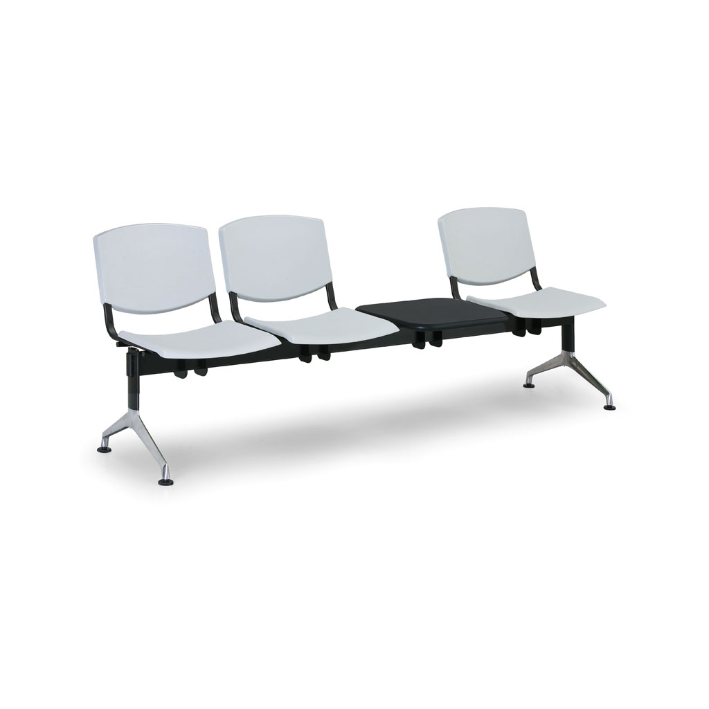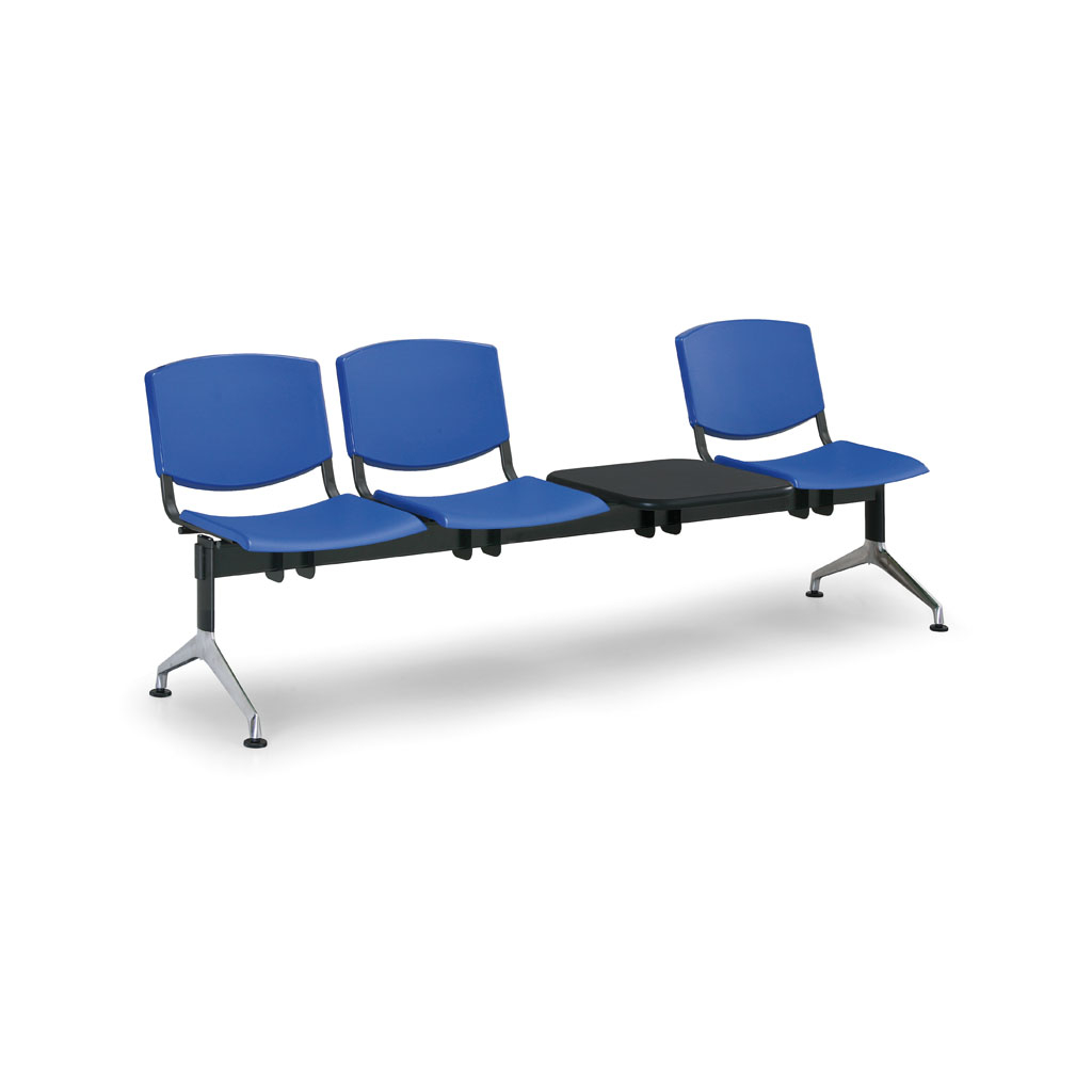 Plastová lavice Design v provedení s hliníkovými nohami a odkládacím stolkem je skvělým vybavením do veřejných prostorů, hal či nejrůznějších typů čekáren. Jednotlivá místa k sezení jsou umístěna na ocelové konstrukci lavice a skládají se z tvrzených plastových desek pro sedák i opěrák. Velkou výhodou plastové lavice je odolnost proti poškození a velmi snadná údržba včetně čištění.