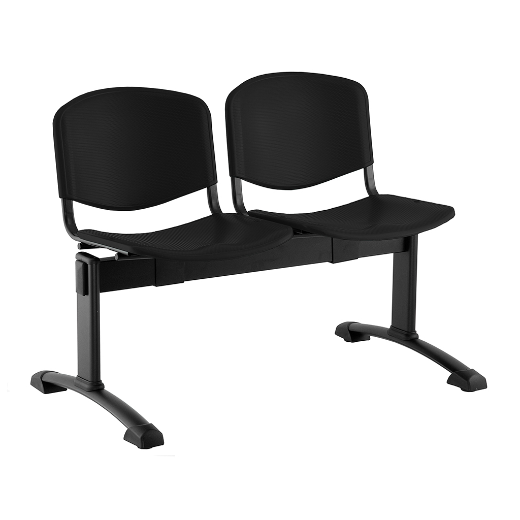 Plastová lavice ISO v provedení s černými kovovými nohami je skvělým vybavením do veřejných prostorů, hal či nejrůznějších typů čekáren. Jednotlivá místa k sezení jsou umístěna na ocelové konstrukci lavice a skládají se z plastových desek pro sedák i opěrák. Velkou výhodou plastové lavice je odolnost proti poškození a velmi snadná údržba včetně čištění.