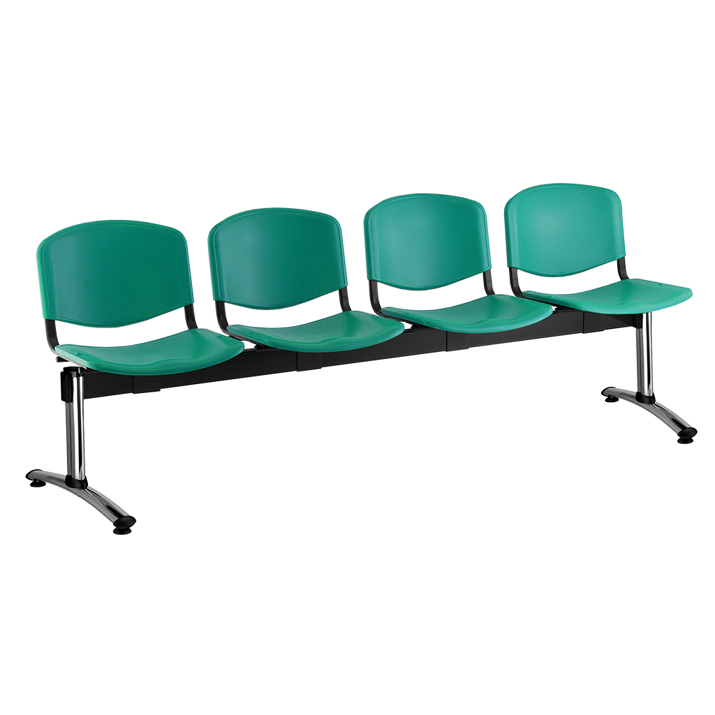 Plastová lavice ISO, 4-sedák - chromované nohy, zelená
