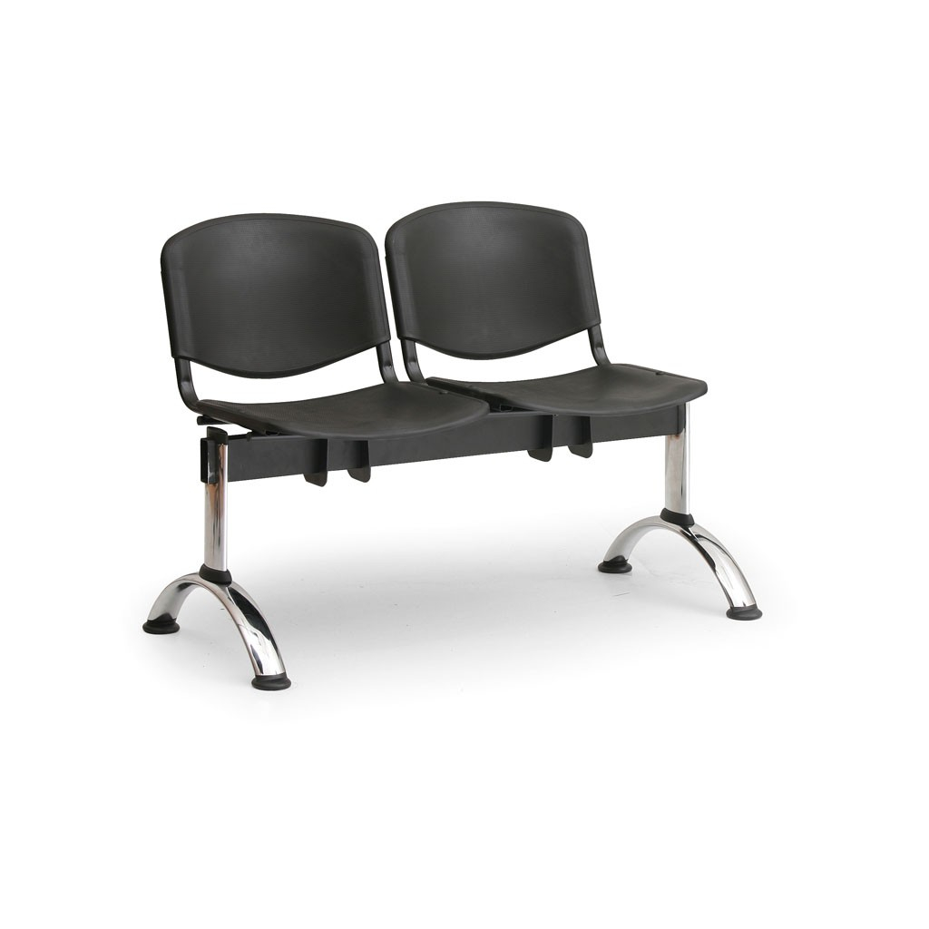 Plastová lavice ISO II, 2-sedák - chromované nohy, černá