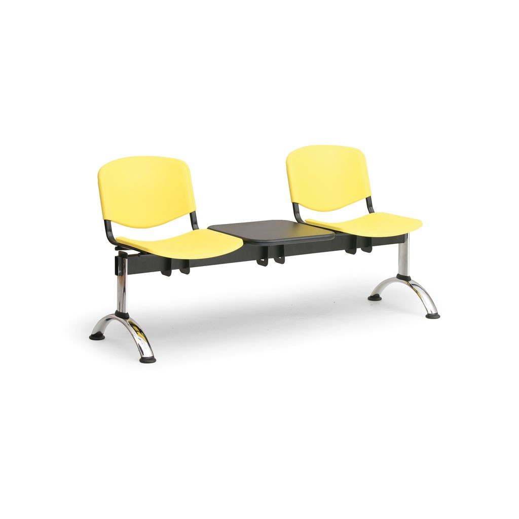 Plastová lavice ISO II v provedení s chromovanými nohami a odkládacím stolkem je skvělým vybavením do veřejných prostorů, hal či nejrůznějších typů čekáren. Jednotlivá místa k sezení jsou umístěna na ocelové konstrukci lavice a skládají se z plastových desek pro sedák i opěrák. Velkou výhodou plastové lavice je odolnost proti poškození a velmi snadná údržba včetně čištění.