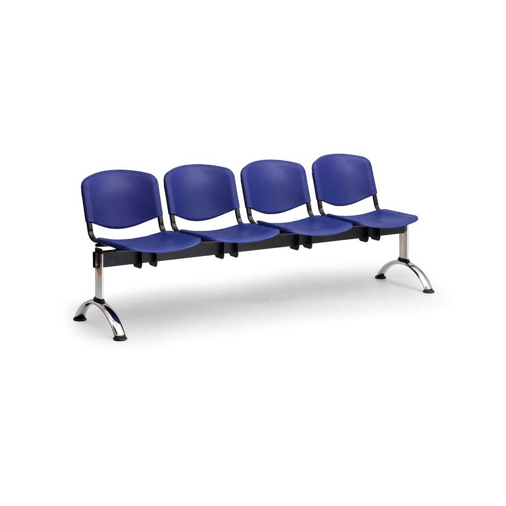 Plastová lavice ISO II, 4-sedák - chromované nohy, černá