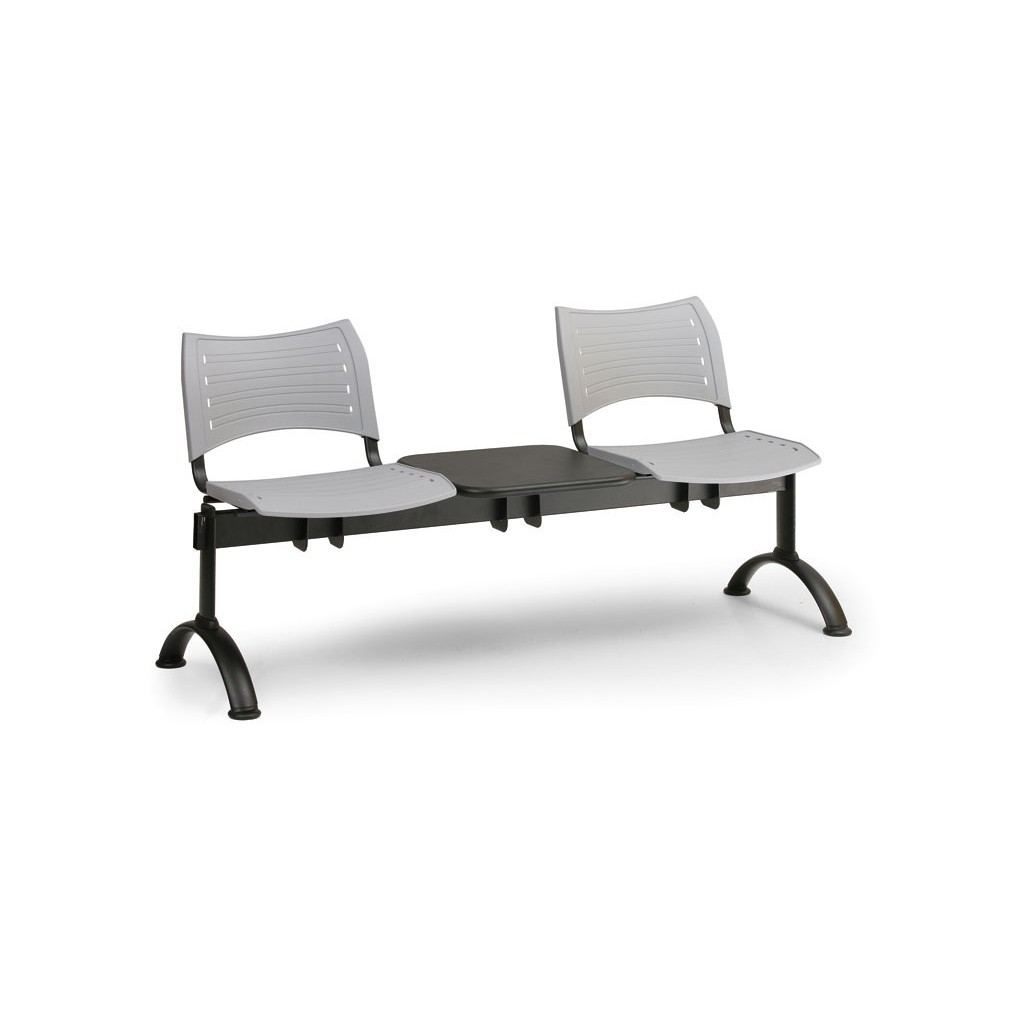 Plastová lavice VISIO v provedení s černými kovovými nohami a odkládacím stolkem je skvělým vybavením do veřejných prostorů, hal či nejrůznějších typů čekáren. Jednotlivá místa k sezení jsou umístěna na ocelové konstrukci lavice a skládají se z tvrzených plastových desek pro sedák i opěrák. Velkou výhodou plastové lavice je odolnost proti poškození a velmi snadná údržba včetně čištění.