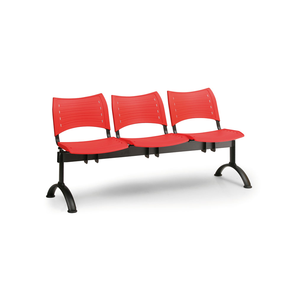 Plastová lavice VISIO v provedení s černými kovovými nohami je skvělým vybavením do veřejných prostorů, hal či nejrůznějších typů čekáren. Jednotlivá místa k sezení jsou umístěna na ocelové konstrukci lavice a skládají se z tvrzených plastových desek pro sedák i opěrák. Velkou výhodou plastové lavice je odolnost proti poškození a velmi snadná údržba včetně čištění.