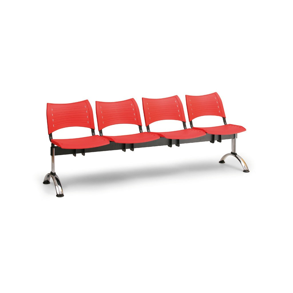 Plastová lavice VISIO v provedení s chromovanými nohami je skvělým vybavením do veřejných prostorů, hal či nejrůznějších typů čekáren. Jednotlivá místa k sezení jsou umístěna na ocelové konstrukci lavice a skládají se z tvrzených plastových desek pro sedák i opěrák. Velkou výhodou plastové lavice je odolnost proti poškození a velmi snadná údržba včetně čištění.