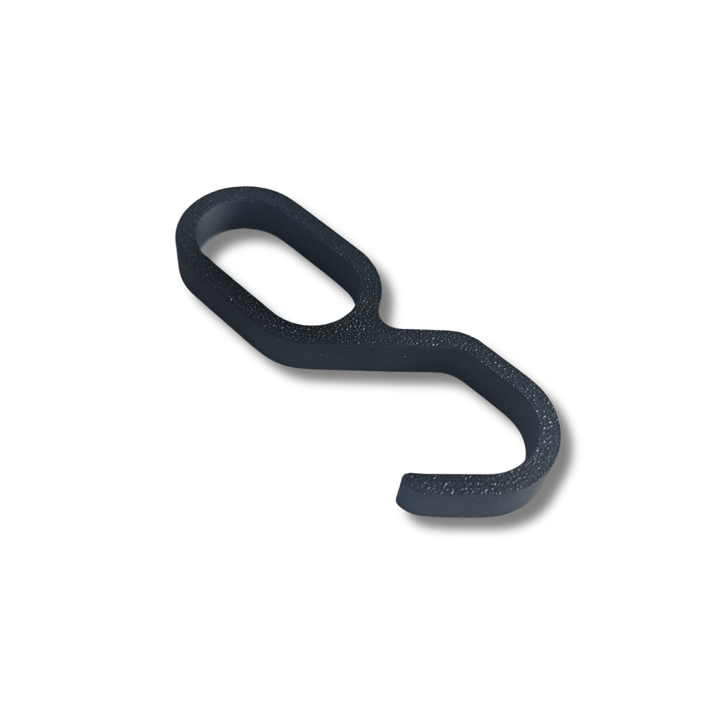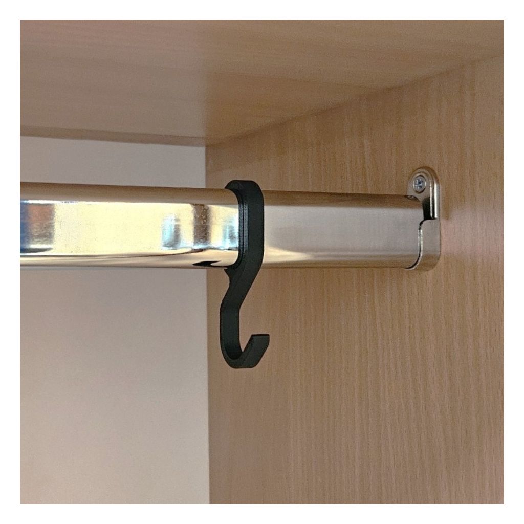 Tento háček doporučujeme na šatní tyče s oválným profilem do 15,5 x 30,5 mm. Je vyrobený metodou 3D tisku z odolného plastu a na tyč jej navlečete zboku.